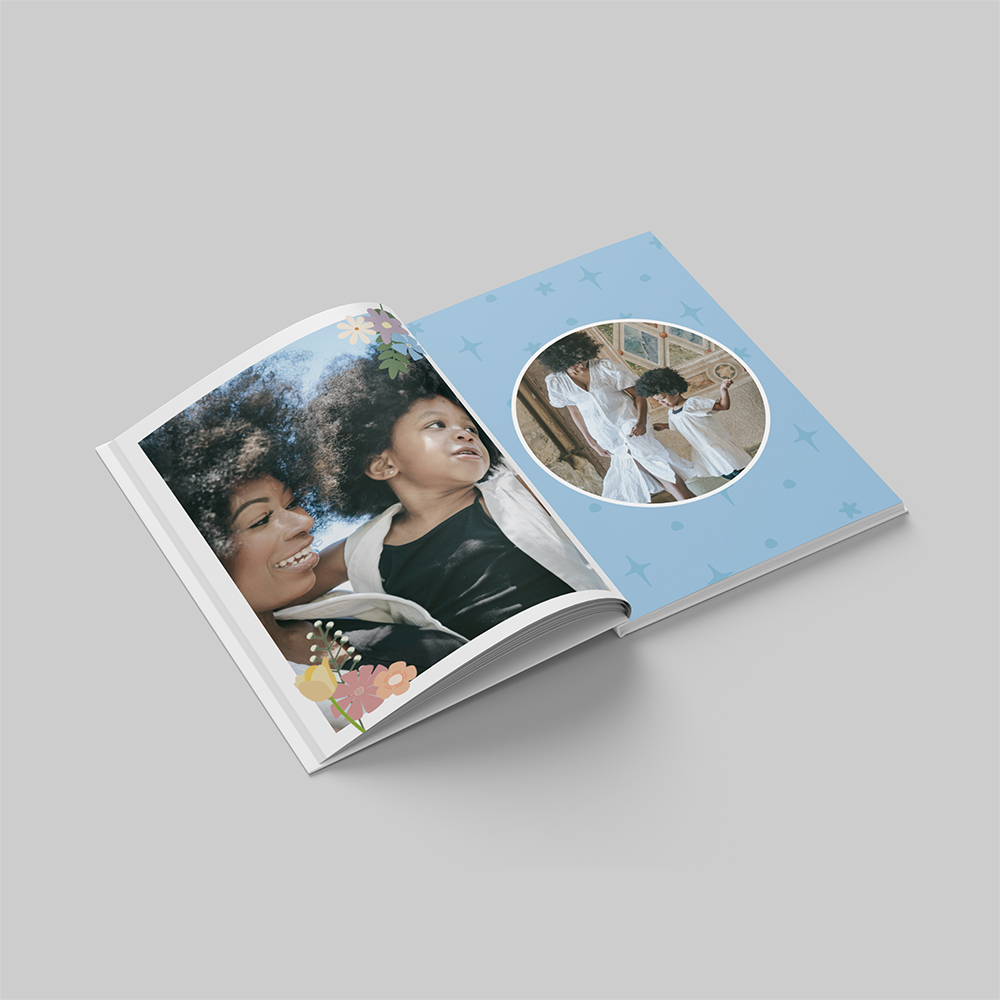 Lilleliste kujundustega fotoraamat, mis laseb piltidel ise rääkida. Värviline taust toob esile iga emotsiooni — sobib ideaalselt pere -, reisipiltide või kingitusena lähedasele. Kujunda ise ja loo ajatu mälestus.
